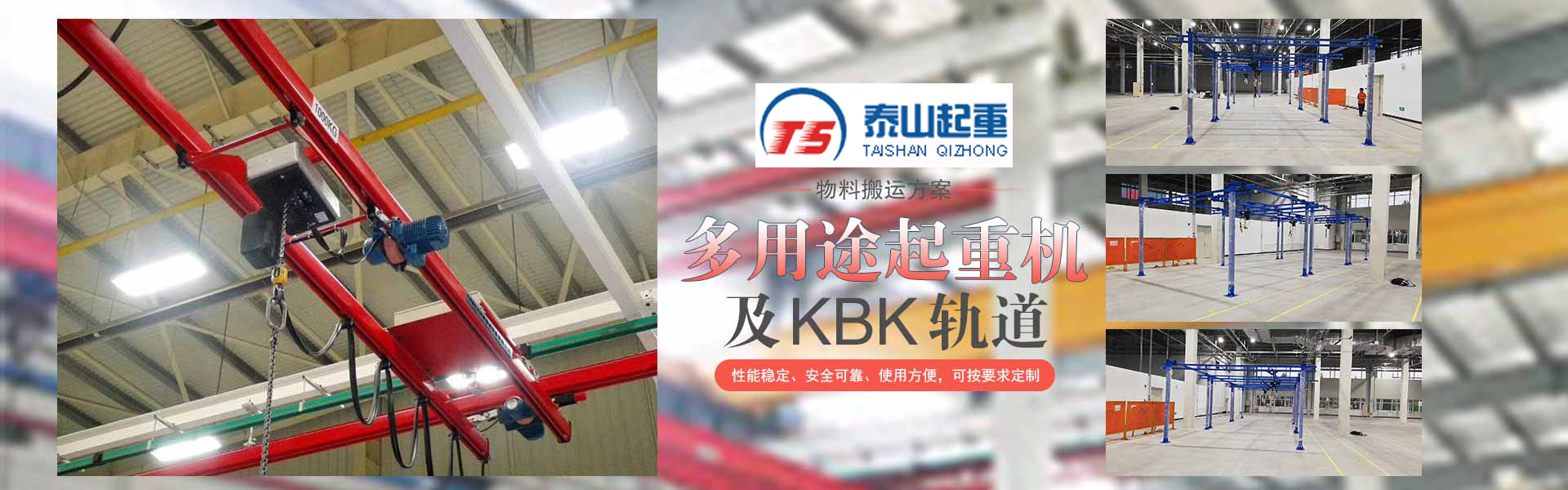 江陰市泰山起重設備有限公司座落在富庶的現(xiàn)代化港口城市——江陰市南閘鎮(zhèn)工業(yè)園區(qū),緊靠錫澄高速,錫澄路,北依江陰港區(qū),貫通滬寧高速的世界第四、中國第一的江陰長江大橋,穿越而過,飛架南北,高速至上海虹橋機場僅2小時,南又緊靠正在建設中的無錫國際機場,交通便捷,環(huán)境優(yōu)美?! ”竟緦I(yè)為壁行式懸臂起重機、KBK軌道,鋼絲繩電動葫蘆、環(huán)鏈葫蘆、KBK組件,梁式起重機、電動旋臂起重機等配套起重機械配件,主要產品有:KBK軌道,梁吊掛裝置、環(huán)鏈葫蘆,KBK組件,手動式小車、行車走輪、電纜滑車等起重機配件,同時可提供起重設備的安裝、維修、為客戶提供全方位的技術咨詢等各項服務?! 」镜墓芾韺ⅰ耙匀藶楸尽弊鳛樽凇ぁぁ?..